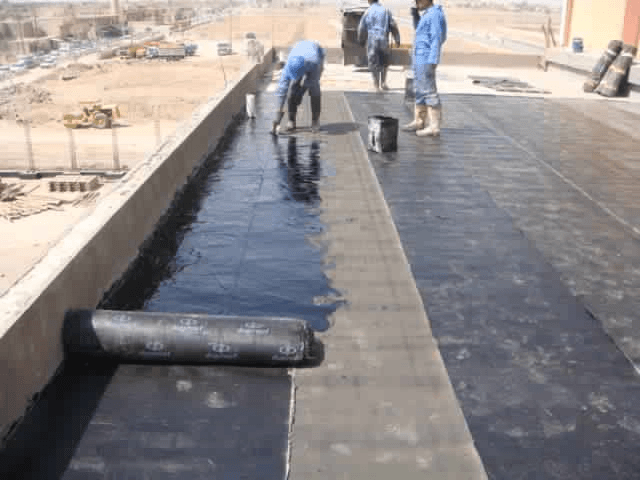 - فحص السطح بدقة لتحديد الشقوق والتصدعات، ثم تعالج باستخدام مواد إسمنتية مطاطية خاصة لسد الثغرات قبل البدء في عملية العزل.